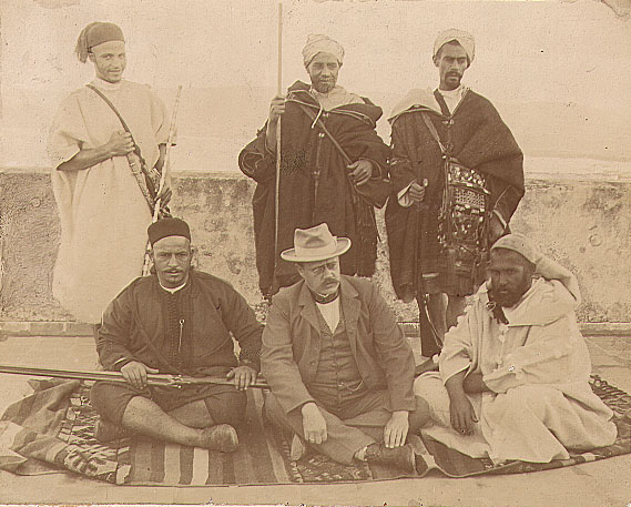 Grupporträtt: sittande från vänster i förgrunden; Sîdi Abdsslam I, i mitten; professor Edvard Westermarck, till höger; SÎdi Rahhal, stående i bakre raden från vänster; Tousi, Abdlkrim, Sîdi Abdsslam II.